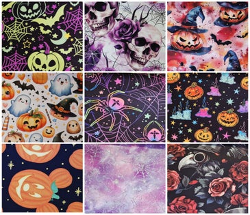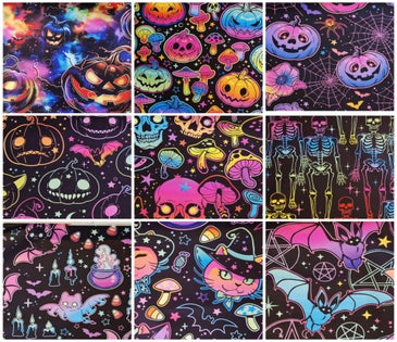 Süße und gruselige Stoffe, perfekt für eure Projekte. Aus Baumwollstoffen könnt ihr viele schöne Dinge nähen.